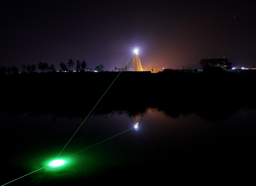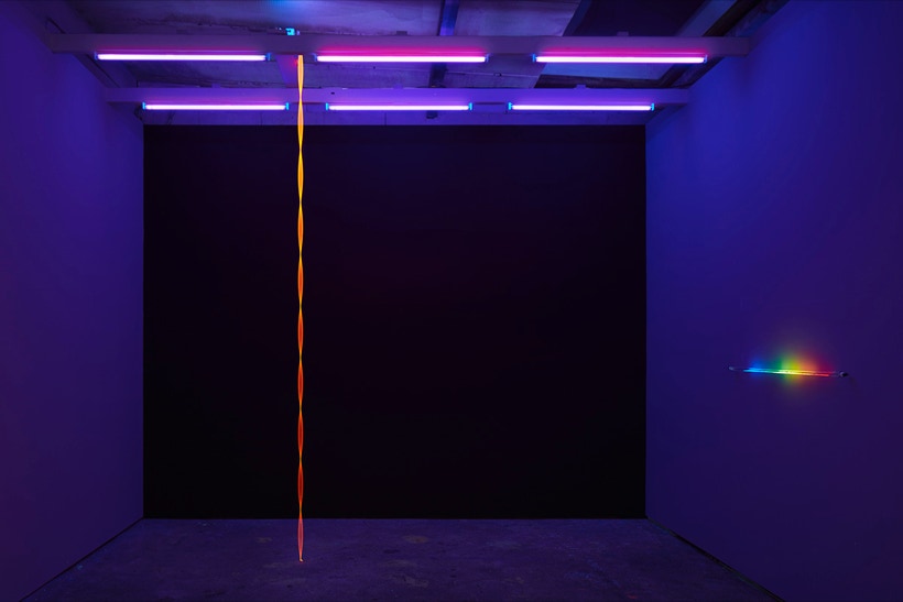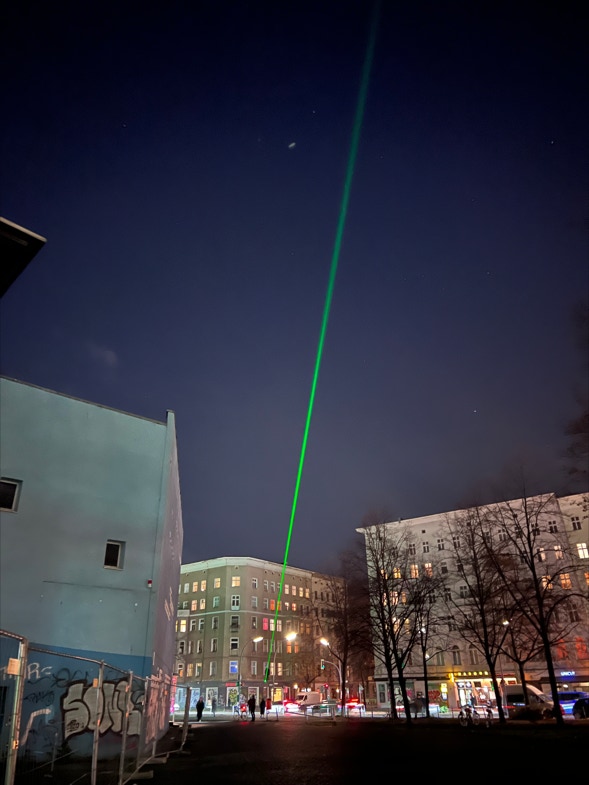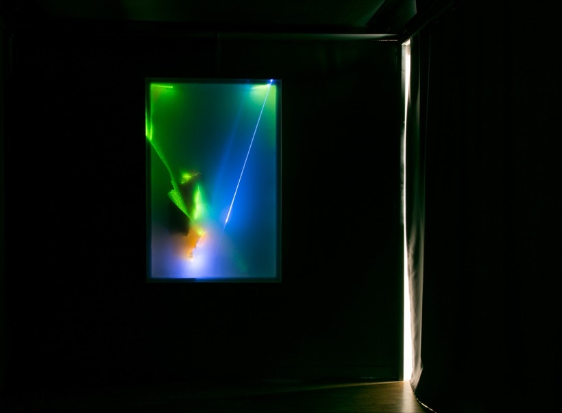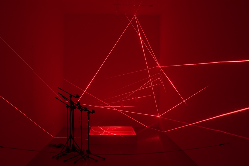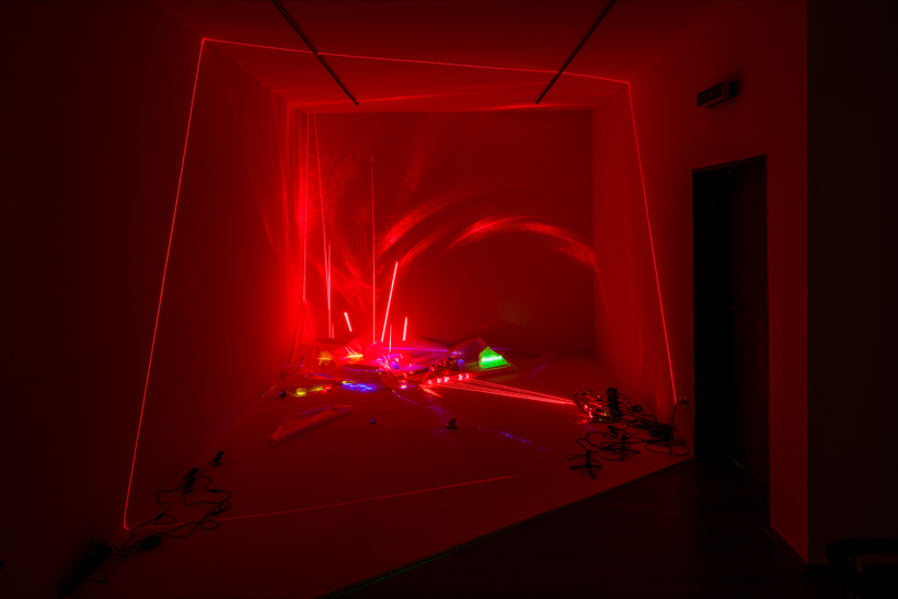 (lasers, stands, fluorescent pigment, mirror foil, Japanese paper)